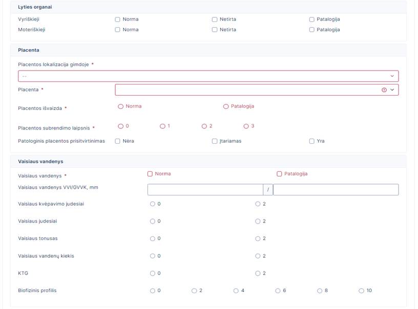 5. Vaisiaus duomenys. Bloke pildoma vaisiaus duomenys. Privalomi laukai pažymėti žvaigždute.