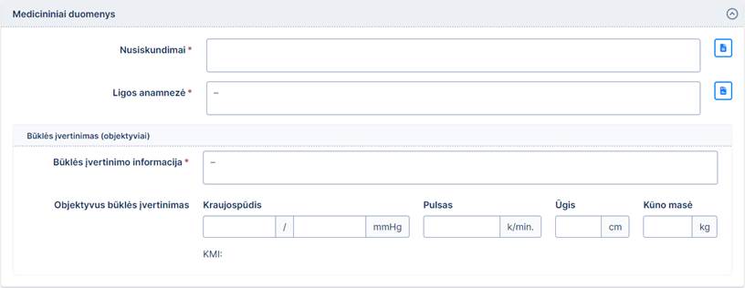 aprašoma paciento būklės informacija, leidžiama įvesti