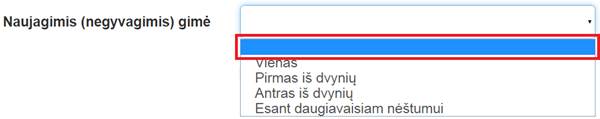 klasifikatoriaus leidžiama pasirinkti to lygio procedūras, kurioms