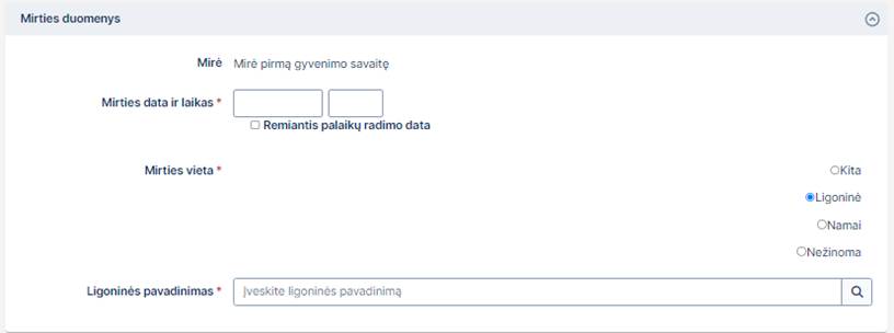 aprašoma paciento būklės informacija, leidžiama įvesti