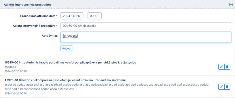 pridėta viena chirurginė procedūra, ir kitos procedūros