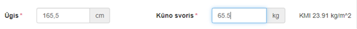 KMI – automatiškai apskaičiuojamas pagal