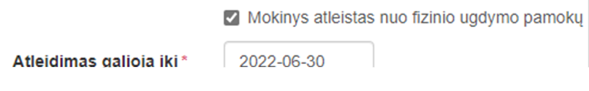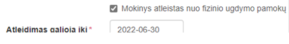 pamokų. Pažymėjus, būtina įvesti atleidimo galiojimo