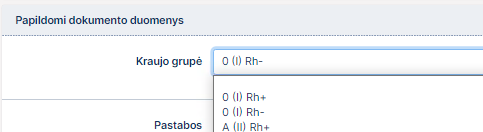 kraujo grupė, tačiau norima jos nenurodyti. Lauko pildyti