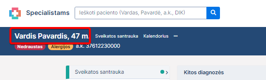Atidaryti paciento profilį. Plačiau apie veiksmą