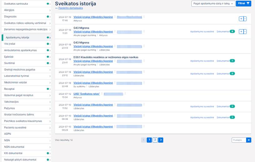 2. Pasirinkti peržiūrėti ESI įrašą iš paciento dešinės pusės navigacijos: