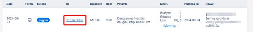 Lange matomi visi paciento ESI išsaugoti elektroniniai dokumentai: skyrimai, receptai ir išdavimai.
