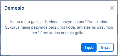 Naudotojas gali sukurti pažymos peržiūros kodą.